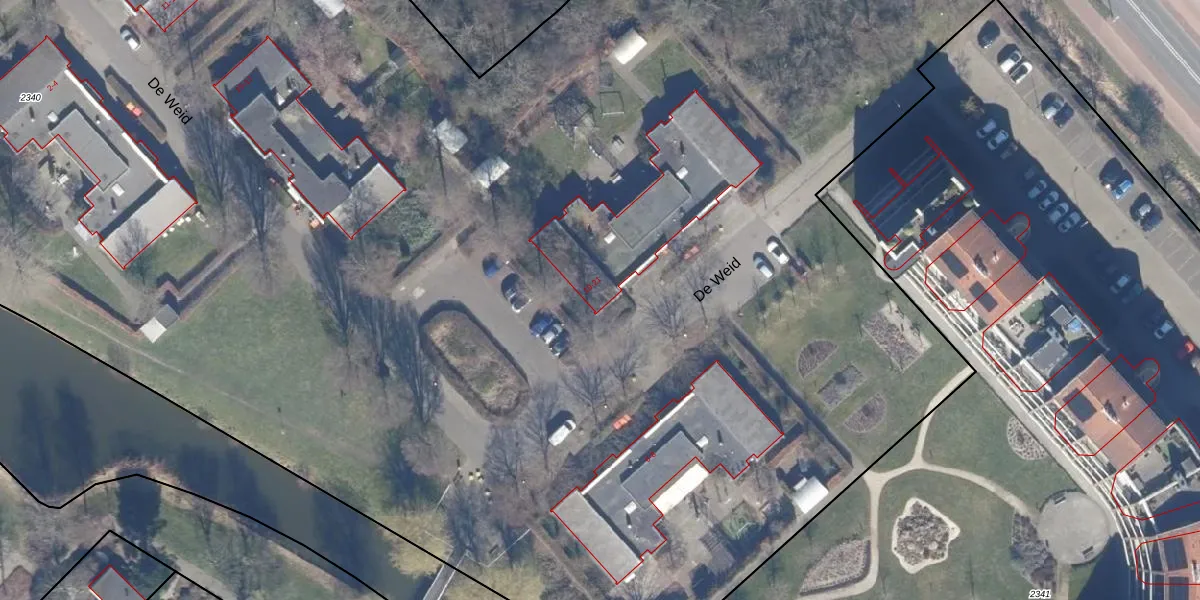 Het perceel waarop De Weid 19 staat heeft een oppervlakte van 5,3 ha. Dit is een zeer groot perceel. De perceeloppervlakte wordt geregistreerd door het Kadaster. Gedetailleerde informatie over de maten van dit perceel kunt u vinden in het rapport Kadastrale kaart met maatvoering van De Weid 19.