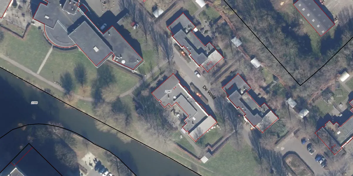 Het perceel waarop De Weid 2 staat heeft een oppervlakte van 5,3 ha. Dit is een zeer groot perceel. De perceeloppervlakte wordt geregistreerd door het Kadaster. Gedetailleerde informatie over de maten van dit perceel kunt u vinden in het rapport Kadastrale kaart met maatvoering van De Weid 2.