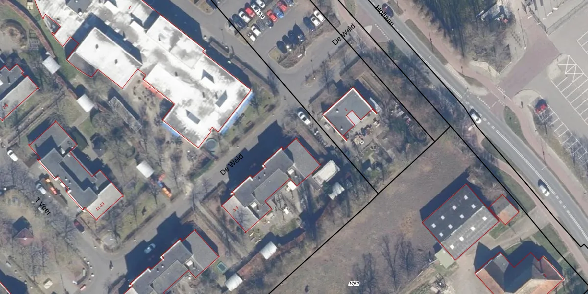 Het perceel waarop De Weid 3 staat heeft een oppervlakte van 5,3 ha. Dit is een zeer groot perceel. De perceeloppervlakte wordt geregistreerd door het Kadaster. Gedetailleerde informatie over de maten van dit perceel kunt u vinden in het rapport Kadastrale kaart met maatvoering van De Weid 3.