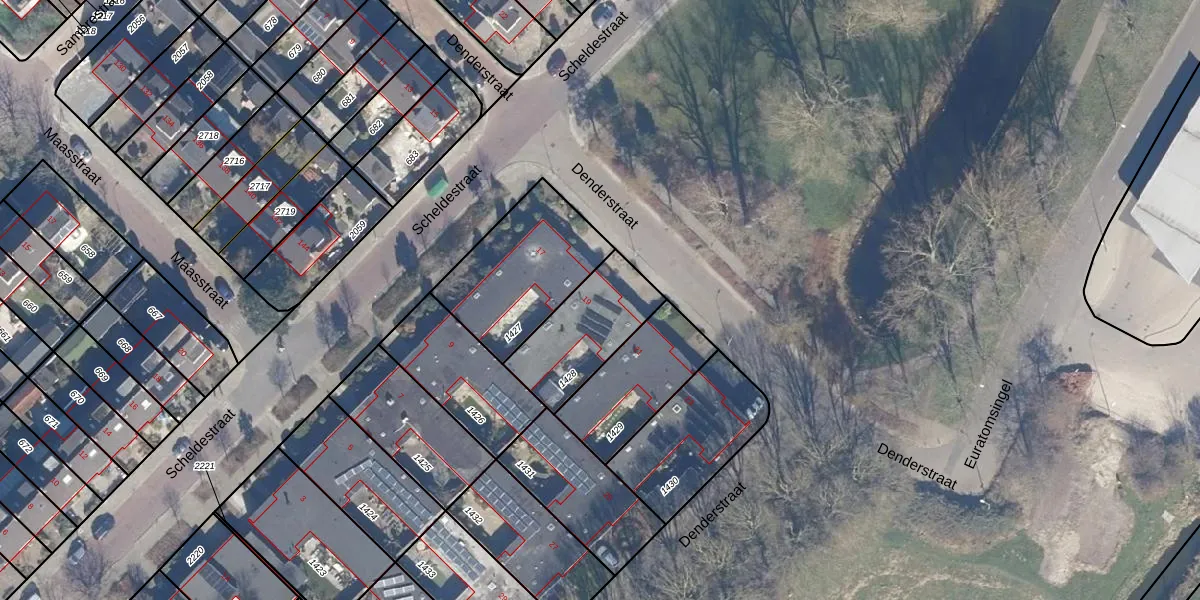 Het perceel waarop Denderstraat 19 staat heeft een oppervlakte van 323 m². Dit is een groot perceel. De perceeloppervlakte wordt geregistreerd door het Kadaster. Gedetailleerde informatie over de maten van dit perceel kunt u vinden in het rapport Kadastrale kaart met maatvoering van Denderstraat 19.