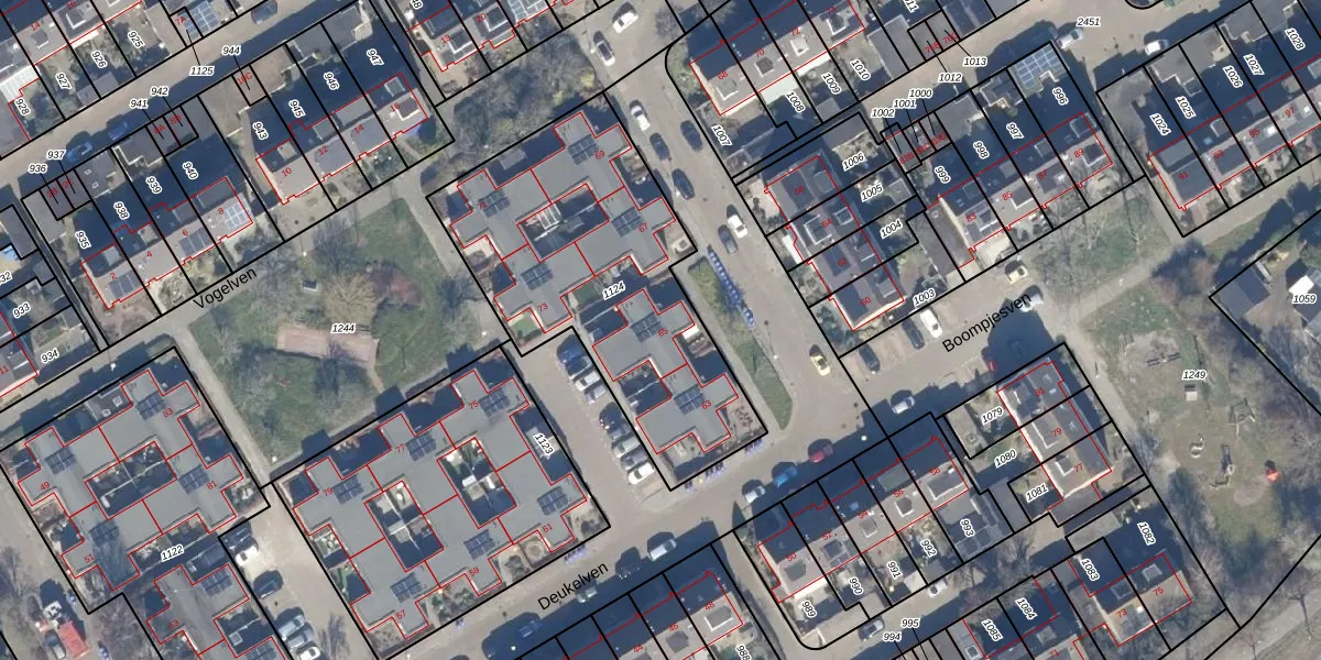 Het perceel waarop Deukelven 65 staat heeft een oppervlakte van 1391 m². Dit is een zeer groot perceel. De perceeloppervlakte wordt geregistreerd door het Kadaster. Gedetailleerde informatie over de maten van dit perceel kunt u vinden in het rapport Kadastrale kaart met maatvoering van Deukelven 65.