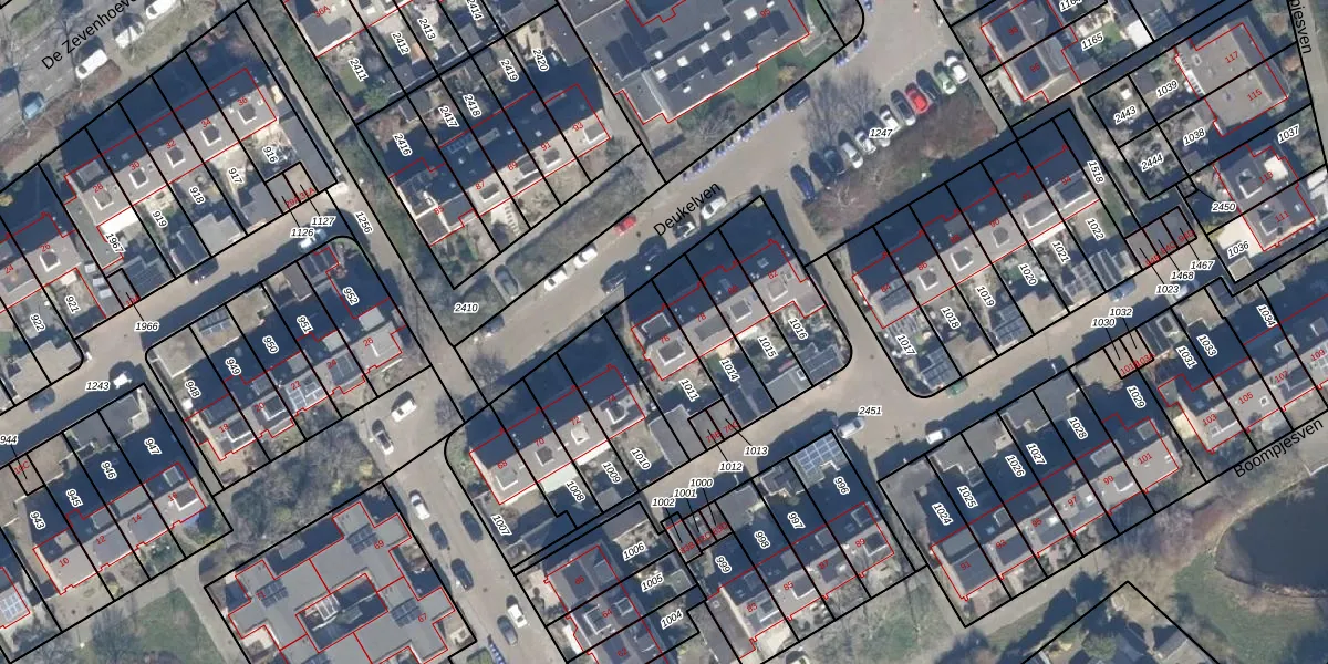 Het perceel waarop Deukelven 76 staat heeft een oppervlakte van 200 m². Dit is een middelgroot perceel. De perceeloppervlakte wordt geregistreerd door het Kadaster. Gedetailleerde informatie over de maten van dit perceel kunt u vinden in het rapport Kadastrale kaart met maatvoering van Deukelven 76.