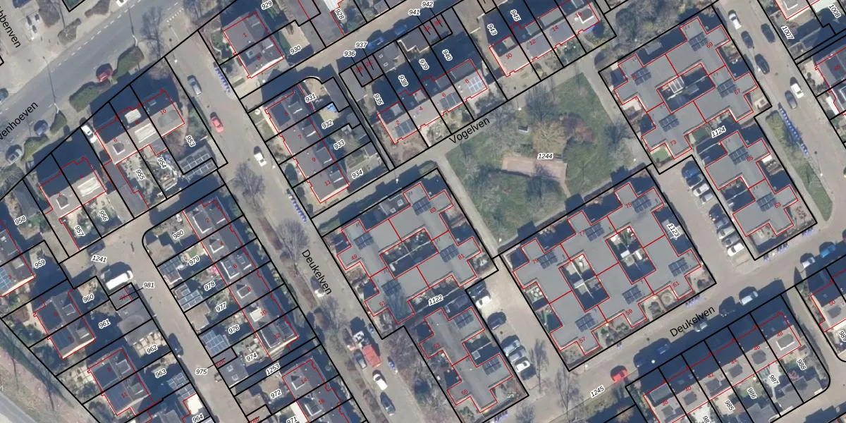 Het perceel waarop Deukelven 83 staat heeft een oppervlakte van 1364 m². Dit is een zeer groot perceel. De perceeloppervlakte wordt geregistreerd door het Kadaster. Gedetailleerde informatie over de maten van dit perceel kunt u vinden in het rapport Kadastrale kaart met maatvoering van Deukelven 83.