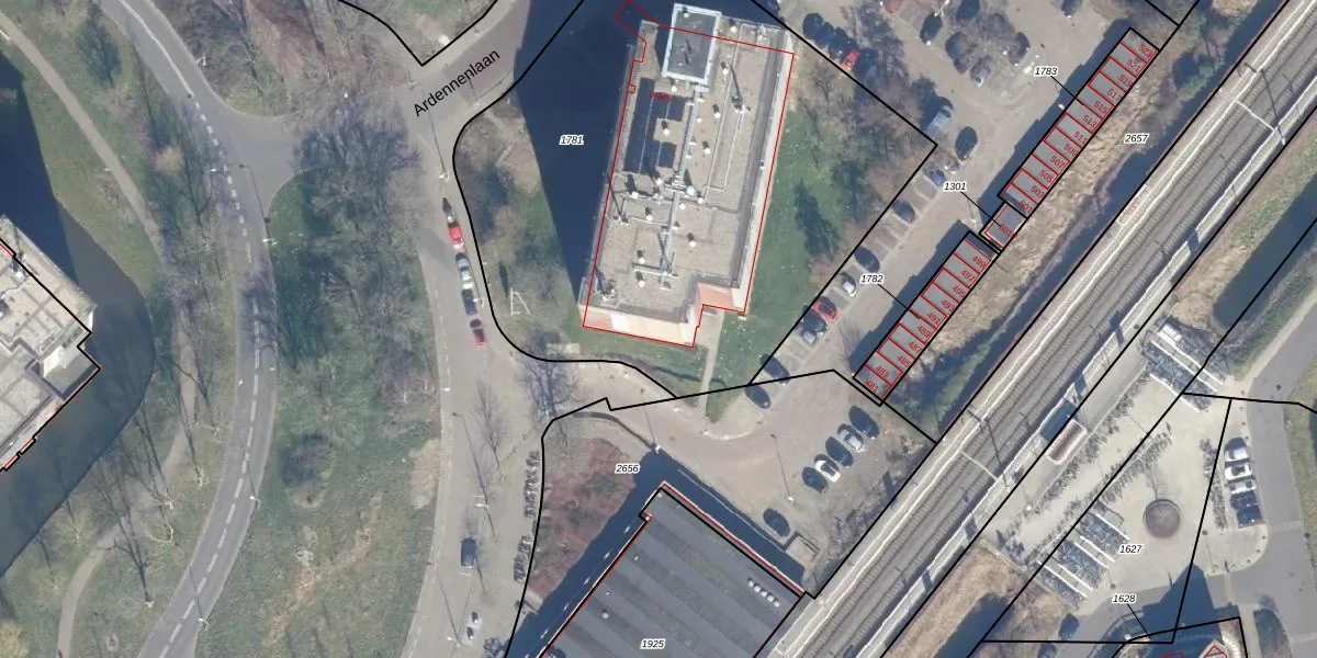 Het perceel waarop Euratomplein 101 staat heeft een oppervlakte van 3168 m². Dit is een zeer groot perceel. De perceeloppervlakte wordt geregistreerd door het Kadaster. Gedetailleerde informatie over de maten van dit perceel kunt u vinden in het rapport Kadastrale kaart met maatvoering van Euratomplein 101.