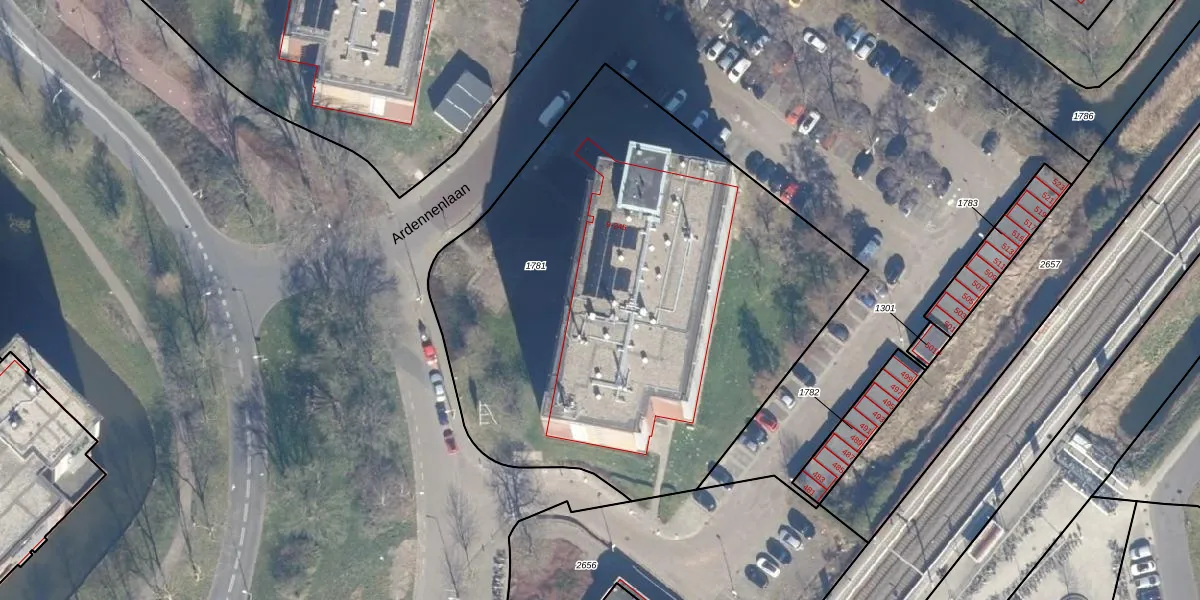Het perceel waarop Euratomplein 133 staat heeft een oppervlakte van 3168 m². Dit is een zeer groot perceel. De perceeloppervlakte wordt geregistreerd door het Kadaster. Gedetailleerde informatie over de maten van dit perceel kunt u vinden in het rapport Kadastrale kaart met maatvoering van Euratomplein 133.