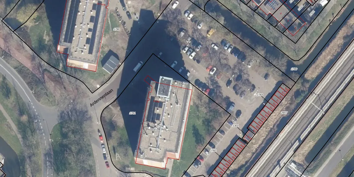 Het perceel waarop Euratomplein 37 staat heeft een oppervlakte van 3168 m². Dit is een zeer groot perceel. De perceeloppervlakte wordt geregistreerd door het Kadaster. Gedetailleerde informatie over de maten van dit perceel kunt u vinden in het rapport Kadastrale kaart met maatvoering van Euratomplein 37.