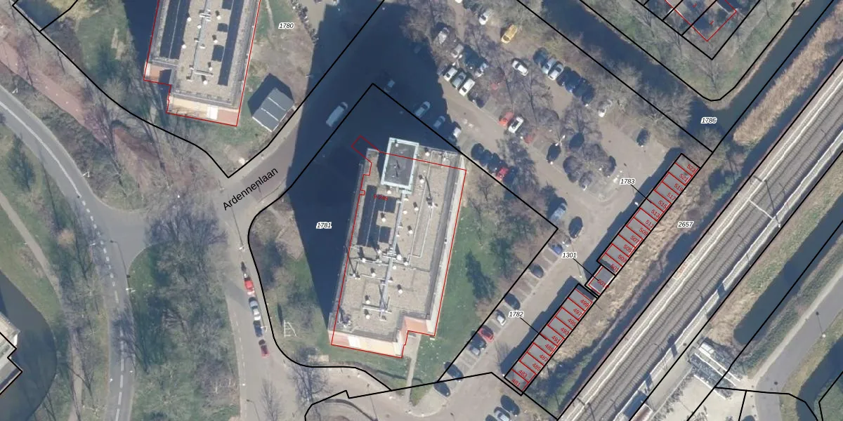 Het perceel waarop Euratomplein 39 staat heeft een oppervlakte van 3168 m². Dit is een zeer groot perceel. De perceeloppervlakte wordt geregistreerd door het Kadaster. Gedetailleerde informatie over de maten van dit perceel kunt u vinden in het rapport Kadastrale kaart met maatvoering van Euratomplein 39.
