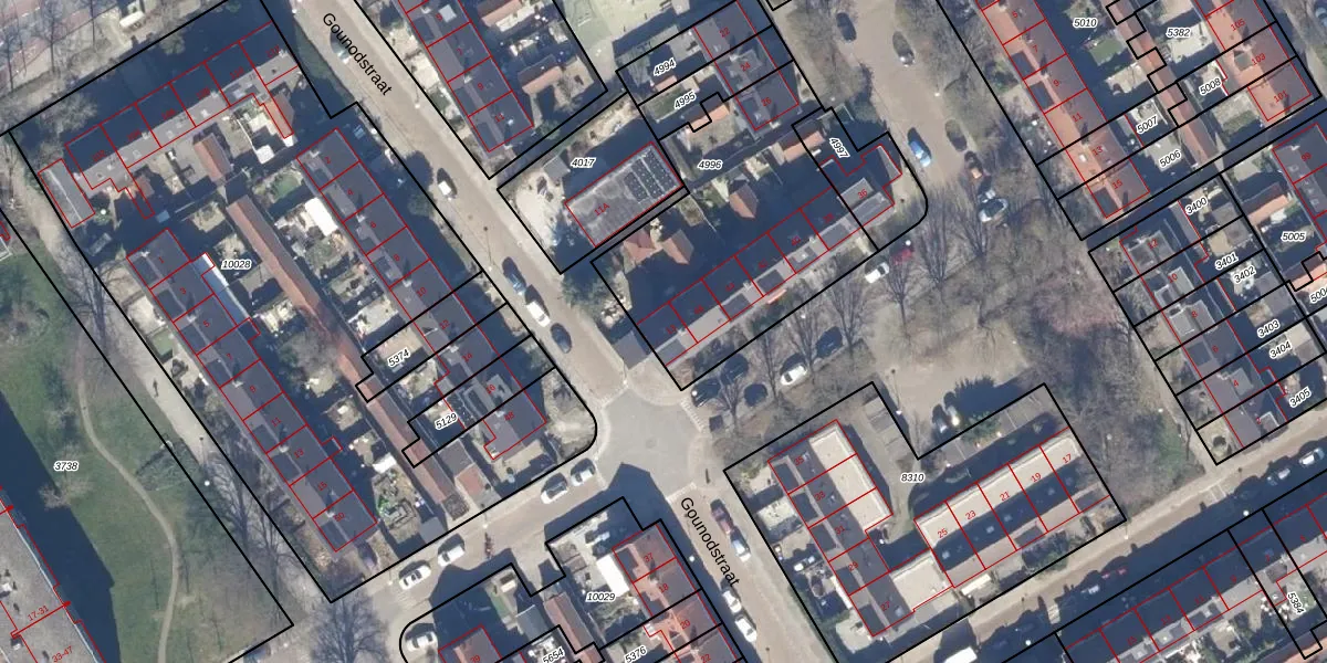 Het perceel waarop Gounodstraat 13 staat heeft een oppervlakte van 1060 m². Dit is een zeer groot perceel. De perceeloppervlakte wordt geregistreerd door het Kadaster. Gedetailleerde informatie over de maten van dit perceel kunt u vinden in het rapport Kadastrale kaart met maatvoering van Gounodstraat 13.