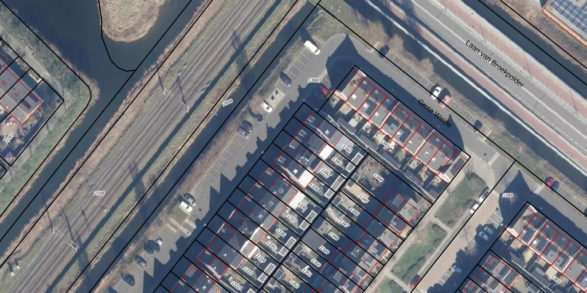 Het perceel waarop Grote Weide 45 staat heeft een oppervlakte van 159 m². Dit is een middelgroot perceel. De perceeloppervlakte wordt geregistreerd door het Kadaster. Gedetailleerde informatie over de maten van dit perceel kunt u vinden in het rapport Kadastrale kaart met maatvoering van Grote Weide 45.