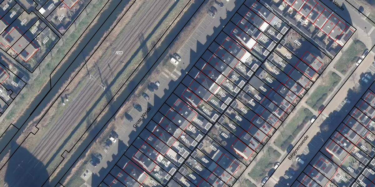 Het perceel waarop Grote Weide 61 staat heeft een oppervlakte van 192 m². Dit is een middelgroot perceel. De perceeloppervlakte wordt geregistreerd door het Kadaster. Gedetailleerde informatie over de maten van dit perceel kunt u vinden in het rapport Kadastrale kaart met maatvoering van Grote Weide 61.