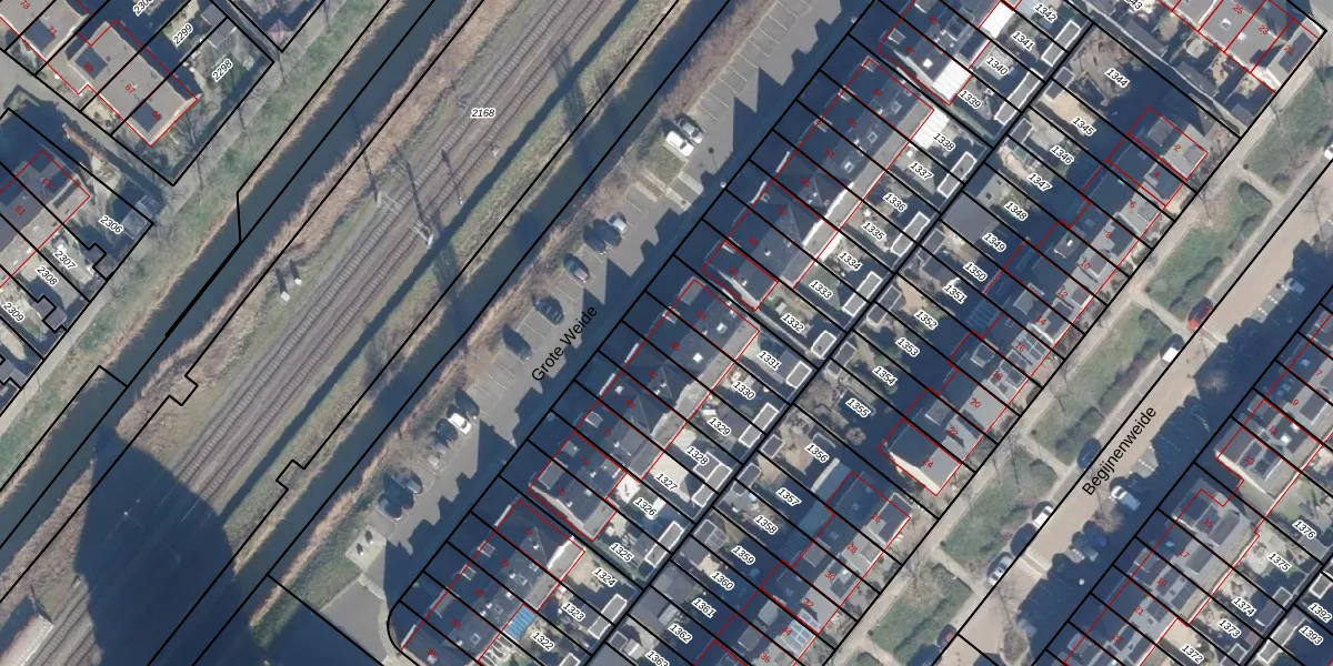 Het perceel waarop Grote Weide 65 staat heeft een oppervlakte van 159 m². Dit is een middelgroot perceel. De perceeloppervlakte wordt geregistreerd door het Kadaster. Gedetailleerde informatie over de maten van dit perceel kunt u vinden in het rapport Kadastrale kaart met maatvoering van Grote Weide 65.