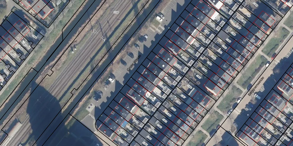 Het perceel waarop Grote Weide 69 staat heeft een oppervlakte van 159 m². Dit is een middelgroot perceel. De perceeloppervlakte wordt geregistreerd door het Kadaster. Gedetailleerde informatie over de maten van dit perceel kunt u vinden in het rapport Kadastrale kaart met maatvoering van Grote Weide 69.