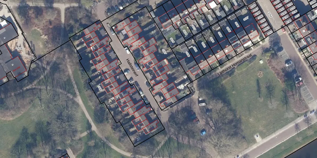 Het perceel waarop Hallsteinerf 10 staat heeft een oppervlakte van 1495 m². Dit is een zeer groot perceel. De perceeloppervlakte wordt geregistreerd door het Kadaster. Gedetailleerde informatie over de maten van dit perceel kunt u vinden in het rapport Kadastrale kaart met maatvoering van Hallsteinerf 10.