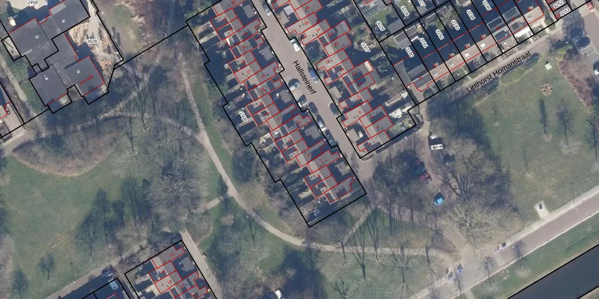 Het perceel waarop Hallsteinerf 11 staat heeft een oppervlakte van 1770 m². Dit is een zeer groot perceel. De perceeloppervlakte wordt geregistreerd door het Kadaster. Gedetailleerde informatie over de maten van dit perceel kunt u vinden in het rapport Kadastrale kaart met maatvoering van Hallsteinerf 11.