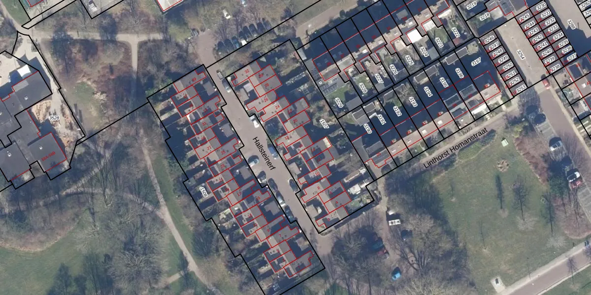 Het perceel waarop Hallsteinerf 16 staat heeft een oppervlakte van 1495 m². Dit is een zeer groot perceel. De perceeloppervlakte wordt geregistreerd door het Kadaster. Gedetailleerde informatie over de maten van dit perceel kunt u vinden in het rapport Kadastrale kaart met maatvoering van Hallsteinerf 16.