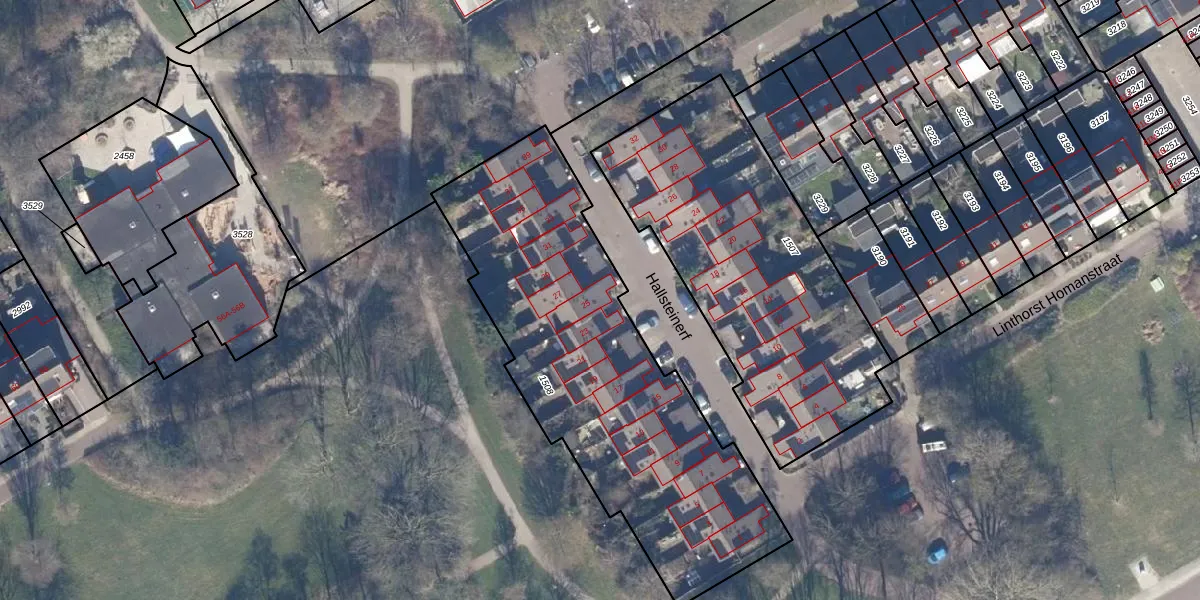 Het perceel waarop Hallsteinerf 25 staat heeft een oppervlakte van 1770 m². Dit is een zeer groot perceel. De perceeloppervlakte wordt geregistreerd door het Kadaster. Gedetailleerde informatie over de maten van dit perceel kunt u vinden in het rapport Kadastrale kaart met maatvoering van Hallsteinerf 25.
