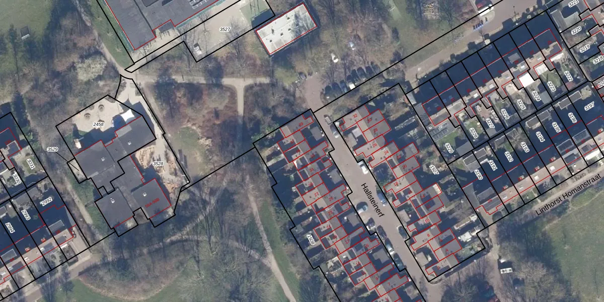 Het perceel waarop Hallsteinerf 35 staat heeft een oppervlakte van 1770 m². Dit is een zeer groot perceel. De perceeloppervlakte wordt geregistreerd door het Kadaster. Gedetailleerde informatie over de maten van dit perceel kunt u vinden in het rapport Kadastrale kaart met maatvoering van Hallsteinerf 35.
