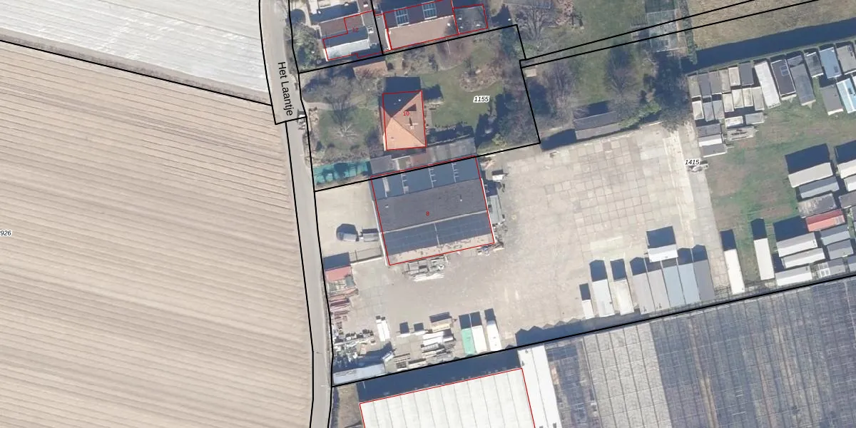 Het Laantje 8 is gelegen op kadastraal perceel HKK01E1415. Deze kadastrale aanduiding is uniek en wordt gebruikt door het Kadaster om eigendomsrechten en andere zakelijke rechten vast te leggen. Het perceel maakt onderdeel uit van de kadastrale gemeente Heemskerk.