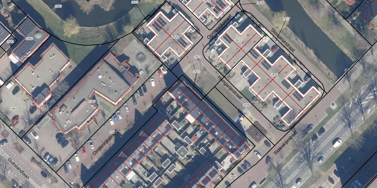Het perceel waarop Hongarijestraat 3 staat heeft een oppervlakte van 4260 m². Dit is een zeer groot perceel. De perceeloppervlakte wordt geregistreerd door het Kadaster. Gedetailleerde informatie over de maten van dit perceel kunt u vinden in het rapport Kadastrale kaart met maatvoering van Hongarijestraat 3.