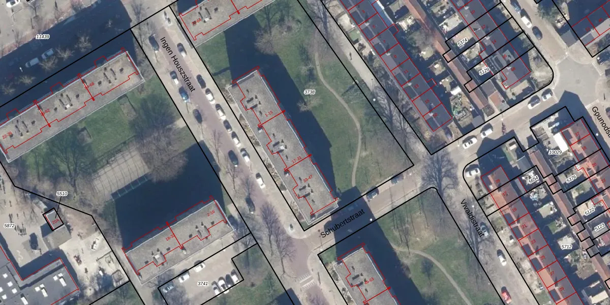 Het perceel waarop Ingen Houszstraat 25 staat heeft een oppervlakte van 3358 m². Dit is een zeer groot perceel. De perceeloppervlakte wordt geregistreerd door het Kadaster. Gedetailleerde informatie over de maten van dit perceel kunt u vinden in het rapport Kadastrale kaart met maatvoering van Ingen Houszstraat 25.