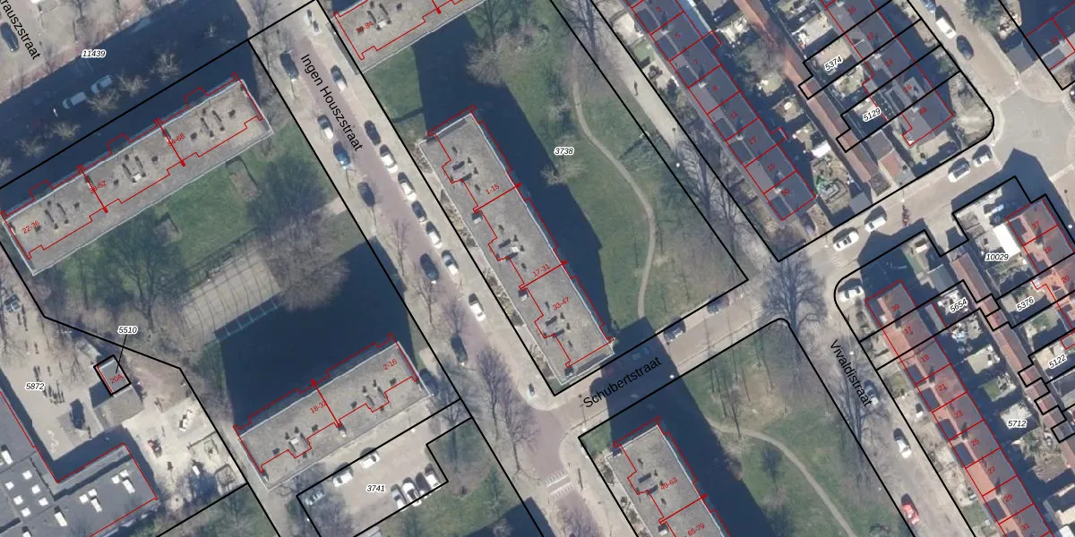 Het perceel waarop Ingen Houszstraat 29 staat heeft een oppervlakte van 3358 m². Dit is een zeer groot perceel. De perceeloppervlakte wordt geregistreerd door het Kadaster. Gedetailleerde informatie over de maten van dit perceel kunt u vinden in het rapport Kadastrale kaart met maatvoering van Ingen Houszstraat 29.