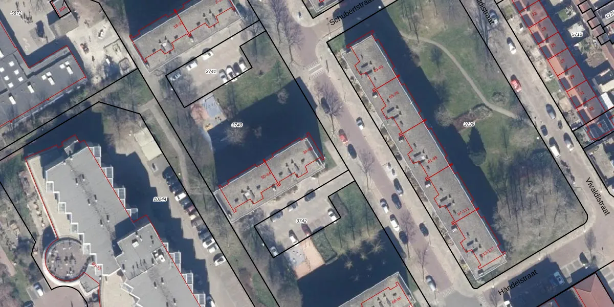 Het adres ligt op het perceel HKK01-D-3740, dat zich in de kadastrale gemeente Heemskerk bevindt. De oppervlakte van het perceel is 7920 m². Dat is groter dan gemiddeld in Heemskerk, waar de gemiddelde perceeloppervlakte op 2221,57 m² ligt. Het grootste perceel in de kadastrale gemeente is 3,82 km². Het kleinste perceel heeft een oppervlakte van 0 m². Op het perceel liggen in totaal 72 adressen. In de Basisregistratie Kadaster (BRK) werden de grenzen van het perceel geregistreerd op 10-11-2010.