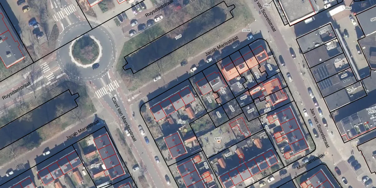 Het perceel waarop Jacob Marisstraat 13 staat heeft een oppervlakte van 945 m². Dit is een groot perceel. De perceeloppervlakte wordt geregistreerd door het Kadaster. Gedetailleerde informatie over de maten van dit perceel kunt u vinden in het rapport Kadastrale kaart met maatvoering van Jacob Marisstraat 13.