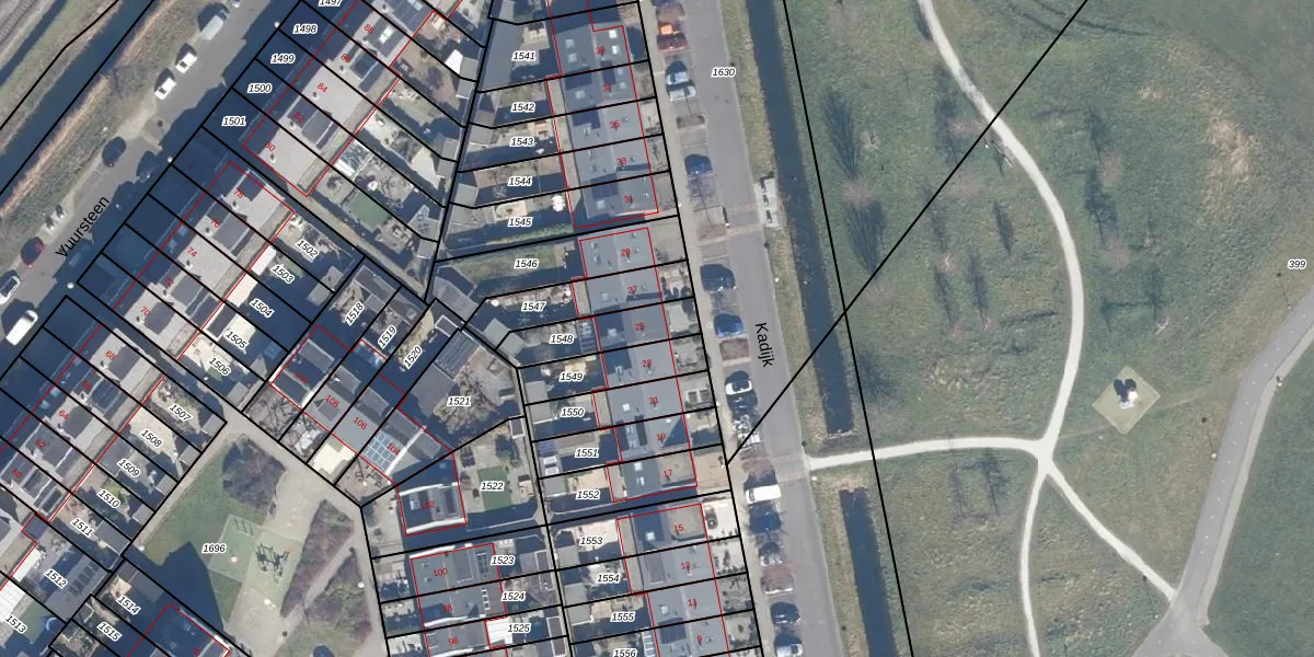 Het perceel waarop Kadijk 25 staat heeft een oppervlakte van 171 m². Dit is een middelgroot perceel. De perceeloppervlakte wordt geregistreerd door het Kadaster. Gedetailleerde informatie over de maten van dit perceel kunt u vinden in het rapport Kadastrale kaart met maatvoering van Kadijk 25.