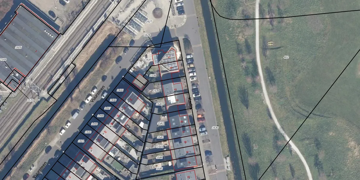 Het perceel waarop Kadijk 43 staat heeft een oppervlakte van 227 m². Dit is een middelgroot perceel. De perceeloppervlakte wordt geregistreerd door het Kadaster. Gedetailleerde informatie over de maten van dit perceel kunt u vinden in het rapport Kadastrale kaart met maatvoering van Kadijk 43.
