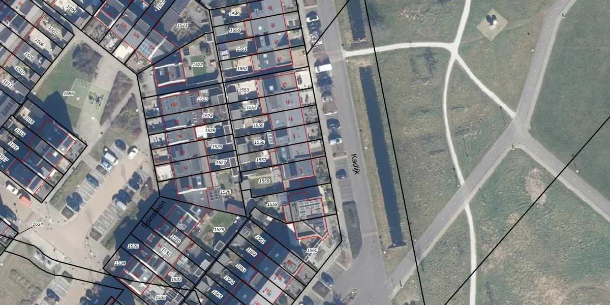 Het perceel waarop Kadijk 7 staat heeft een oppervlakte van 163 m². Dit is een middelgroot perceel. De perceeloppervlakte wordt geregistreerd door het Kadaster. Gedetailleerde informatie over de maten van dit perceel kunt u vinden in het rapport Kadastrale kaart met maatvoering van Kadijk 7.