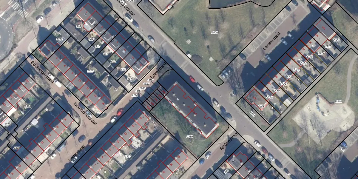 Het perceel waarop Lessestraat 17 staat heeft een oppervlakte van 1113 m². Dit is een zeer groot perceel. De perceeloppervlakte wordt geregistreerd door het Kadaster. Gedetailleerde informatie over de maten van dit perceel kunt u vinden in het rapport Kadastrale kaart met maatvoering van Lessestraat 17.