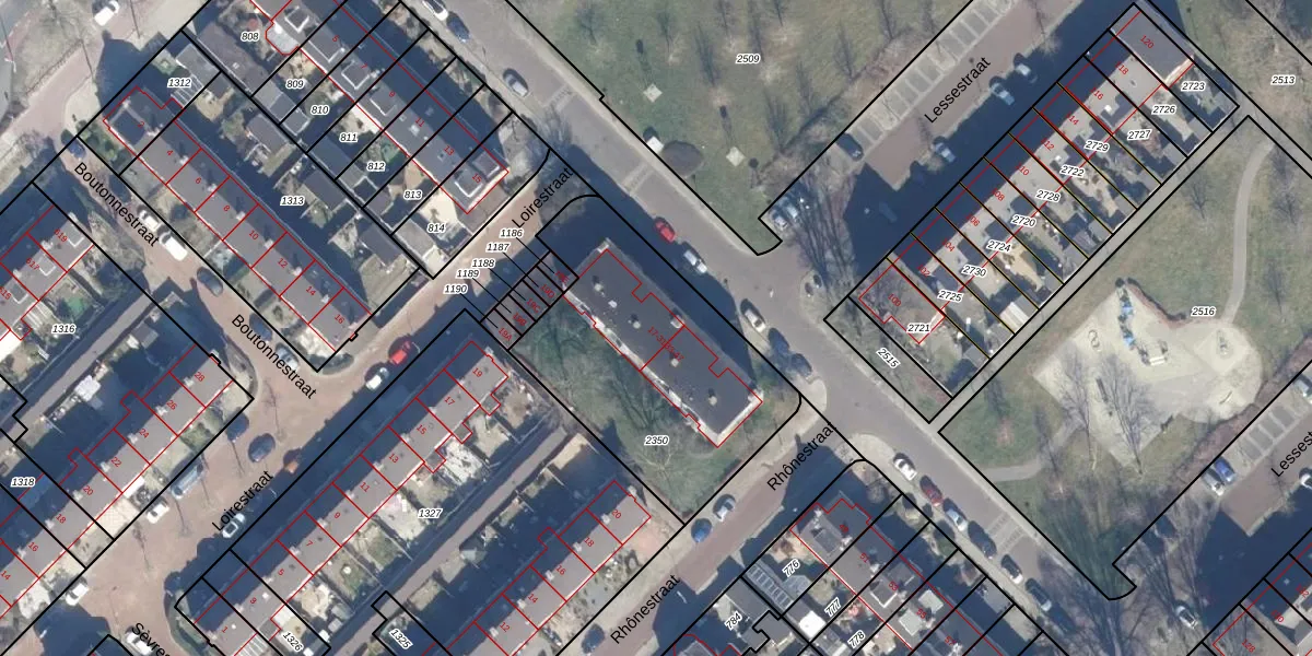 Het perceel waarop Lessestraat 29 staat heeft een oppervlakte van 1113 m². Dit is een zeer groot perceel. De perceeloppervlakte wordt geregistreerd door het Kadaster. Gedetailleerde informatie over de maten van dit perceel kunt u vinden in het rapport Kadastrale kaart met maatvoering van Lessestraat 29.