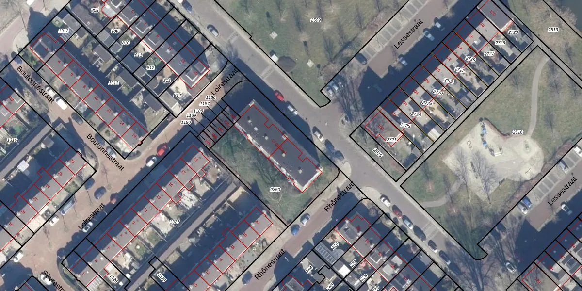Het perceel waarop Lessestraat 33 staat heeft een oppervlakte van 1113 m². Dit is een zeer groot perceel. De perceeloppervlakte wordt geregistreerd door het Kadaster. Gedetailleerde informatie over de maten van dit perceel kunt u vinden in het rapport Kadastrale kaart met maatvoering van Lessestraat 33.
