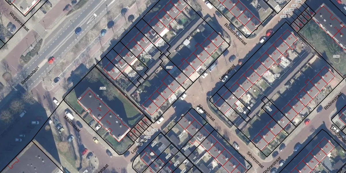 Het perceel waarop Loirestraat 16 staat heeft een oppervlakte van 1120 m². Dit is een zeer groot perceel. De perceeloppervlakte wordt geregistreerd door het Kadaster. Gedetailleerde informatie over de maten van dit perceel kunt u vinden in het rapport Kadastrale kaart met maatvoering van Loirestraat 16.