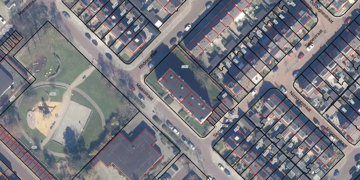 Het perceel waarop Maasstraat 60 staat heeft een oppervlakte van 1170 m². Dit is een zeer groot perceel. De perceeloppervlakte wordt geregistreerd door het Kadaster. Gedetailleerde informatie over de maten van dit perceel kunt u vinden in het rapport Kadastrale kaart met maatvoering van Maasstraat 60.