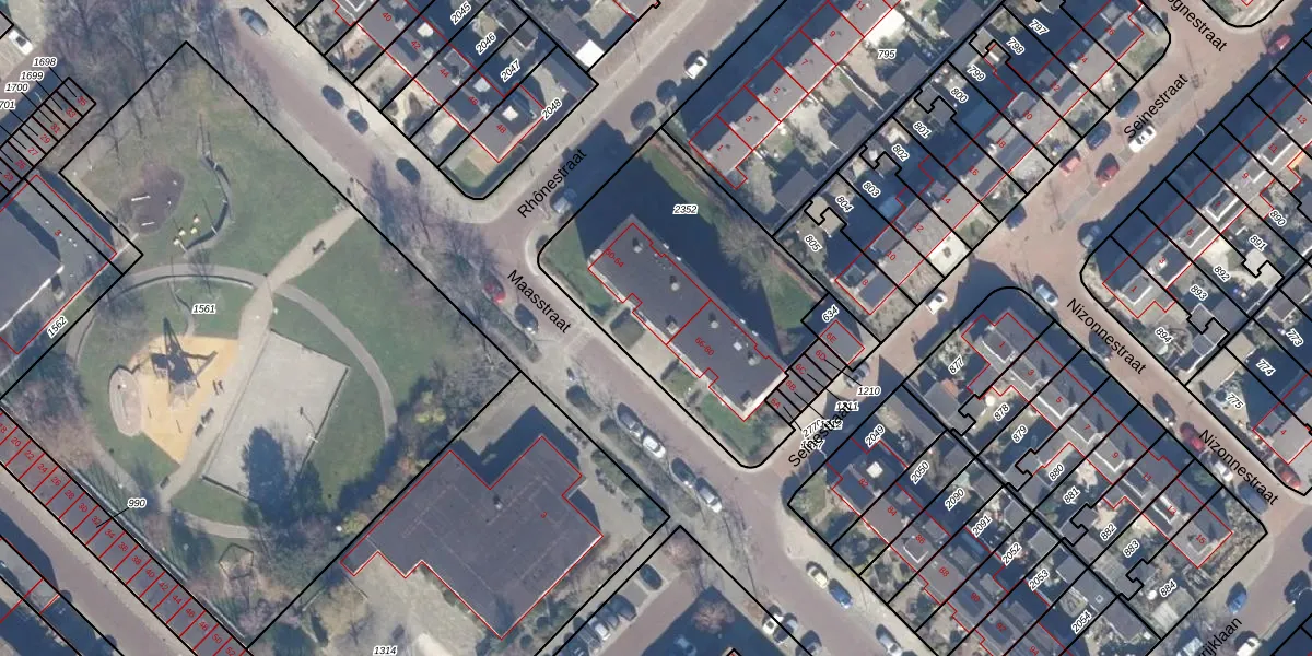 Het perceel waarop Maasstraat 64 staat heeft een oppervlakte van 1170 m². Dit is een zeer groot perceel. De perceeloppervlakte wordt geregistreerd door het Kadaster. Gedetailleerde informatie over de maten van dit perceel kunt u vinden in het rapport Kadastrale kaart met maatvoering van Maasstraat 64.