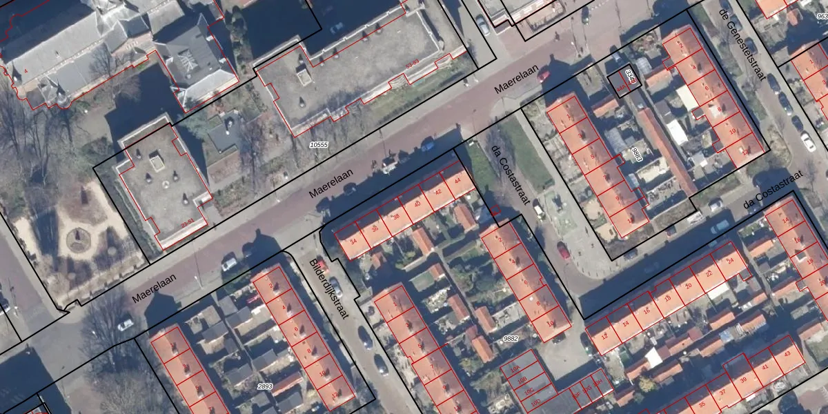 Het perceel waarop Maerelaan 40 staat heeft een oppervlakte van 6240 m². Dit is een zeer groot perceel. De perceeloppervlakte wordt geregistreerd door het Kadaster. Gedetailleerde informatie over de maten van dit perceel kunt u vinden in het rapport Kadastrale kaart met maatvoering van Maerelaan 40.