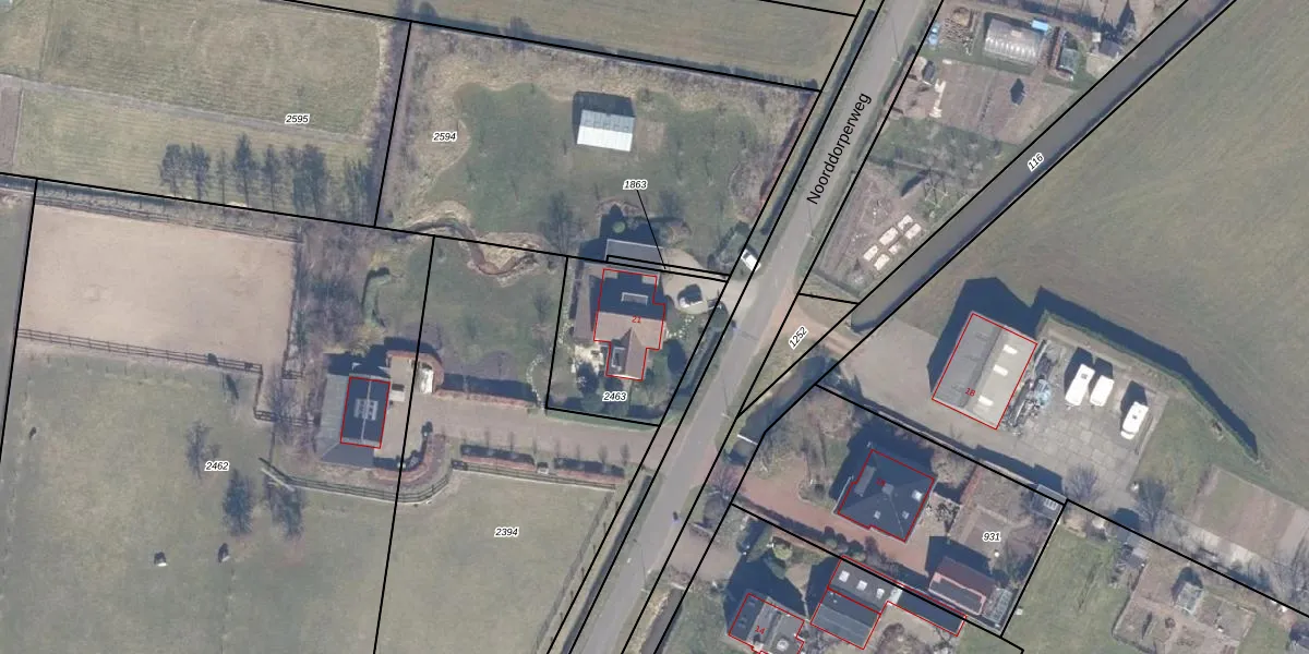 Noorddorperweg 21 is gelegen op kadastraal perceel HKK01E2463. Deze kadastrale aanduiding is uniek en wordt gebruikt door het Kadaster om eigendomsrechten en andere zakelijke rechten vast te leggen. Het perceel maakt onderdeel uit van de kadastrale gemeente Heemskerk.