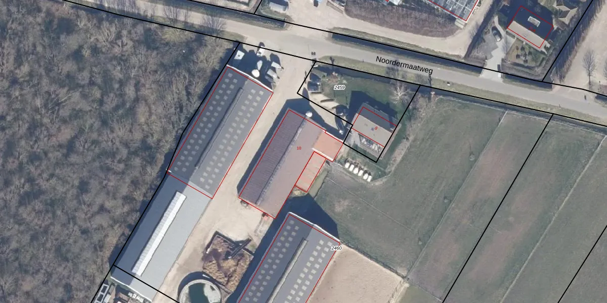 Noordermaatweg 10 is gelegen op kadastraal perceel HKK01E2460. Deze kadastrale aanduiding is uniek en wordt gebruikt door het Kadaster om eigendomsrechten en andere zakelijke rechten vast te leggen. Het perceel maakt onderdeel uit van de kadastrale gemeente Heemskerk.