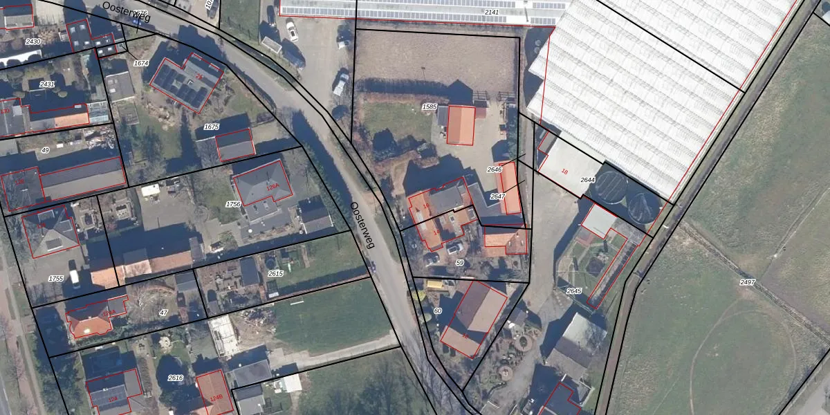 Het perceel waarop Oosterweg 16 staat heeft een oppervlakte van 1720 m². Dit is een zeer groot perceel. De perceeloppervlakte wordt geregistreerd door het Kadaster. Gedetailleerde informatie over de maten van dit perceel kunt u vinden in het rapport Kadastrale kaart met maatvoering van Oosterweg 16.