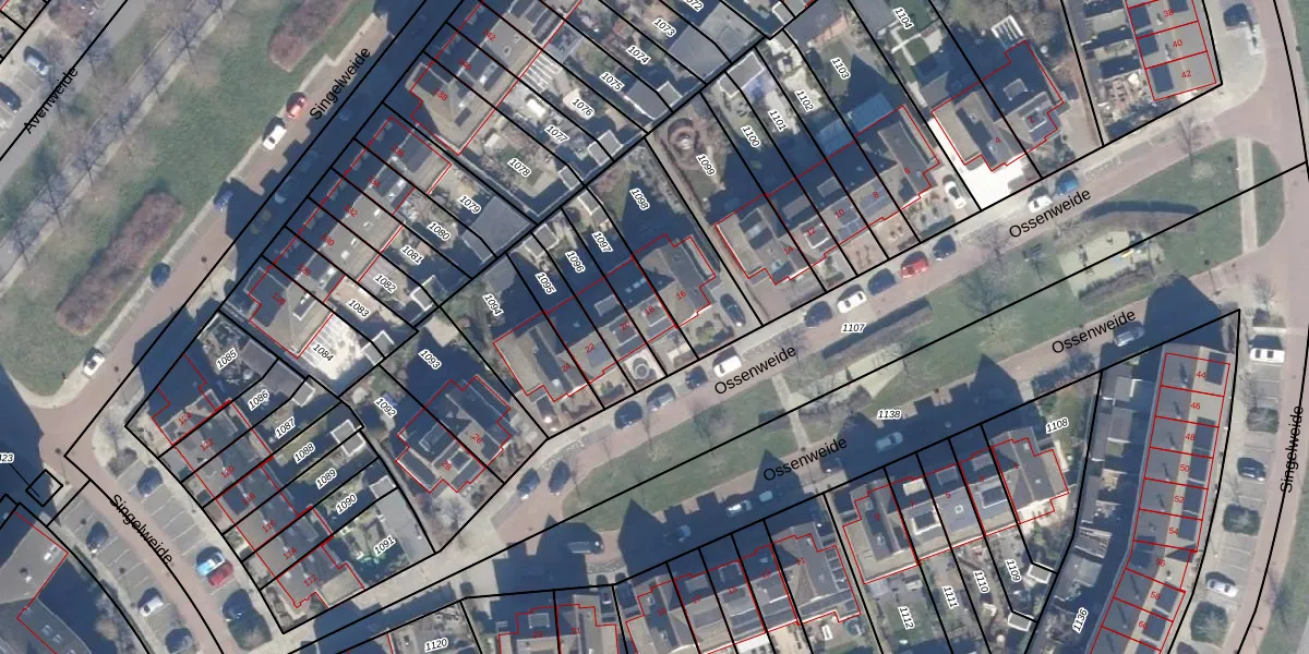 Het perceel waarop Ossenweide 18 staat heeft een oppervlakte van 168 m². Dit is een middelgroot perceel. De perceeloppervlakte wordt geregistreerd door het Kadaster. Gedetailleerde informatie over de maten van dit perceel kunt u vinden in het rapport Kadastrale kaart met maatvoering van Ossenweide 18.