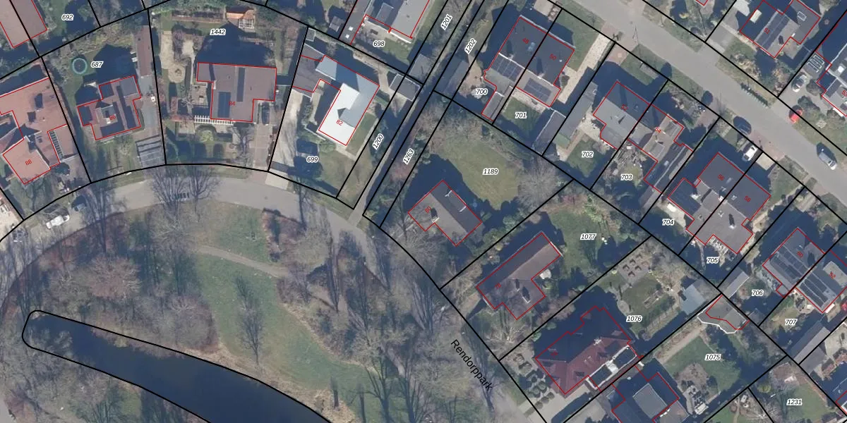 Het perceel waarop Rendorppark 80 staat heeft een oppervlakte van 1020 m². Dit is een zeer groot perceel. De perceeloppervlakte wordt geregistreerd door het Kadaster. Gedetailleerde informatie over de maten van dit perceel kunt u vinden in het rapport Kadastrale kaart met maatvoering van Rendorppark 80.