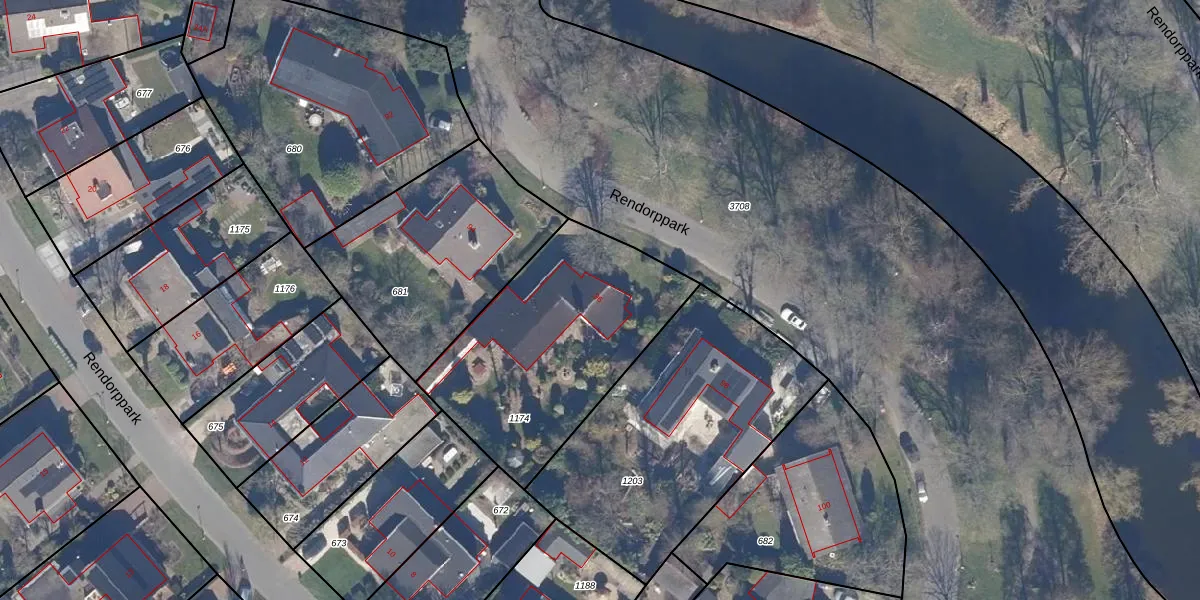 Het perceel waarop Rendorppark 96 staat heeft een oppervlakte van 1023 m². Dit is een zeer groot perceel. De perceeloppervlakte wordt geregistreerd door het Kadaster. Gedetailleerde informatie over de maten van dit perceel kunt u vinden in het rapport Kadastrale kaart met maatvoering van Rendorppark 96.