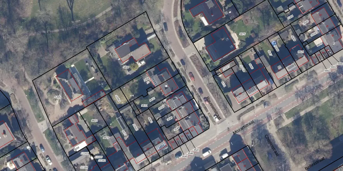 Gebruik de zoekbalk of klik op een perceel voor informatie over de adressen binnen dit perceel.