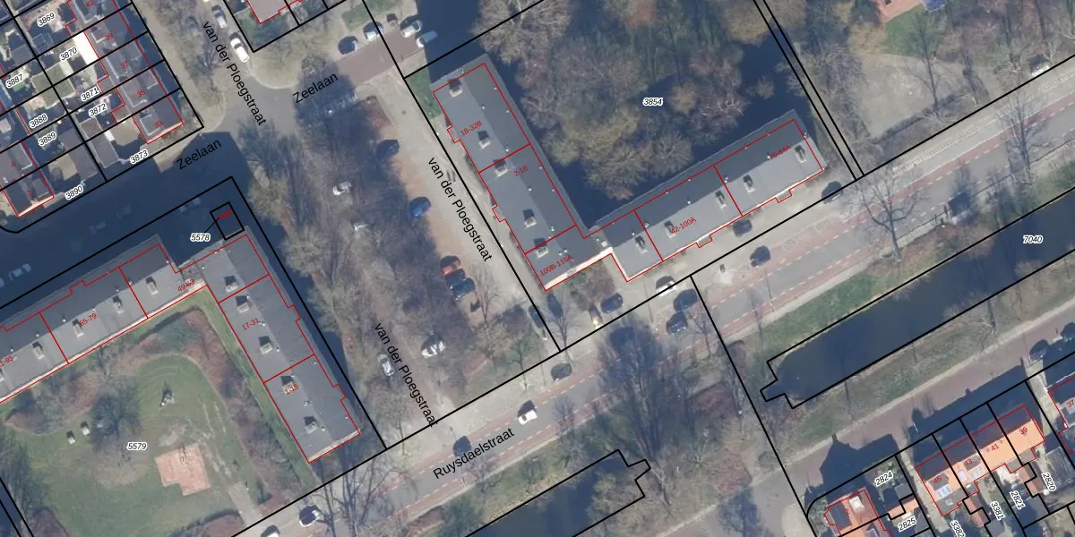 Het perceel waarop Ruysdaelstraat 112 staat heeft een oppervlakte van 3718 m². Dit is een zeer groot perceel. De perceeloppervlakte wordt geregistreerd door het Kadaster. Gedetailleerde informatie over de maten van dit perceel kunt u vinden in het rapport Kadastrale kaart met maatvoering van Ruysdaelstraat 112.