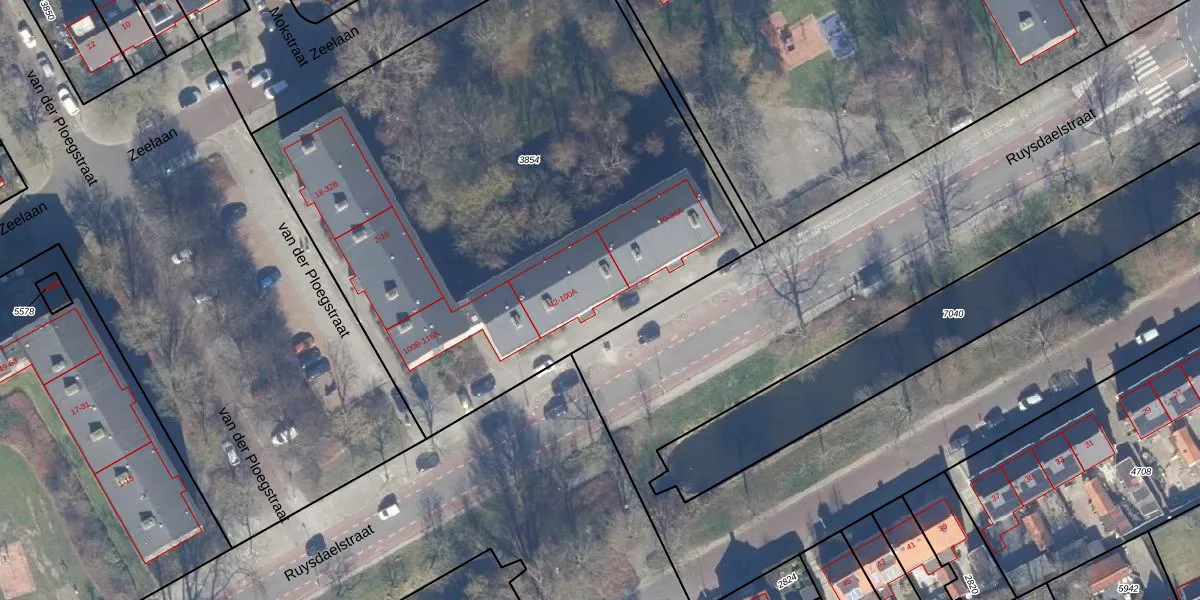 Het perceel waarop Ruysdaelstraat 84-B staat heeft een oppervlakte van 3718 m². Dit is een zeer groot perceel. De perceeloppervlakte wordt geregistreerd door het Kadaster. Gedetailleerde informatie over de maten van dit perceel kunt u vinden in het rapport Kadastrale kaart met maatvoering van Ruysdaelstraat 84-B.
