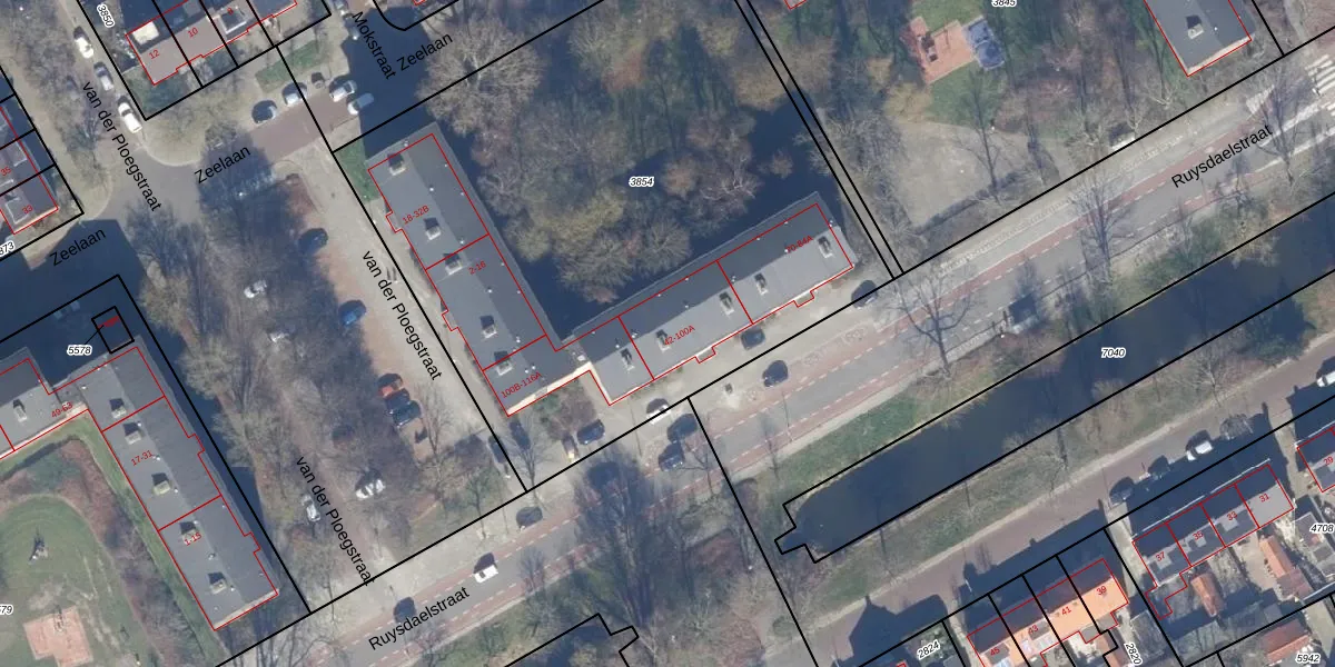 Het perceel waarop Ruysdaelstraat 98 staat heeft een oppervlakte van 3718 m². Dit is een zeer groot perceel. De perceeloppervlakte wordt geregistreerd door het Kadaster. Gedetailleerde informatie over de maten van dit perceel kunt u vinden in het rapport Kadastrale kaart met maatvoering van Ruysdaelstraat 98.