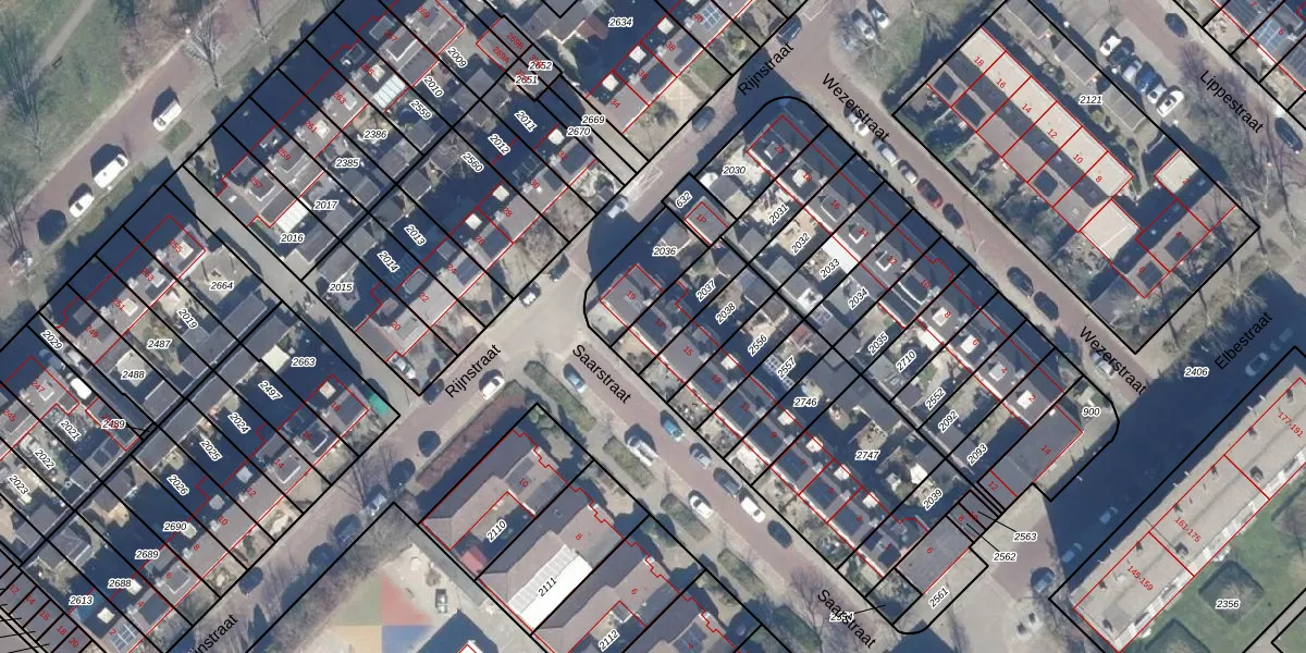 Gebruik de zoekbalk of klik op een perceel voor informatie over de adressen binnen dit perceel.