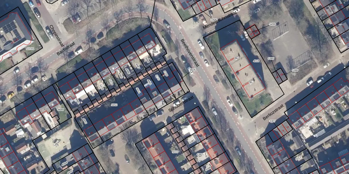 Gebruik de zoekbalk of klik op een perceel voor informatie over de adressen binnen dit perceel.