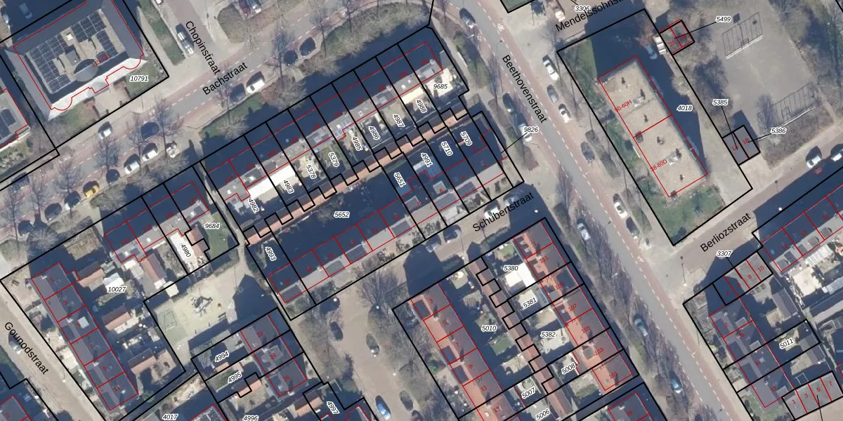 Het perceel waarop Schubertstraat 8 staat heeft een oppervlakte van 135 m². Dit is een middelgroot perceel. De perceeloppervlakte wordt geregistreerd door het Kadaster. Gedetailleerde informatie over de maten van dit perceel kunt u vinden in het rapport Kadastrale kaart met maatvoering van Schubertstraat 8.
